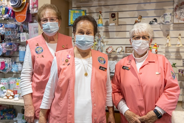 NIH Auxiliary Gift Shop Co-Chair Carole Sample, NIH Auxiliary President Judy Fratella, and NIH Auxiliary Gift Shop Chair Betty Dickie are ready to ...