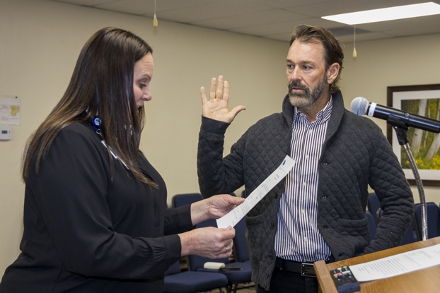 David McCoy Barrett takes the oath of office as he is sworn into the Northern Inyo Health Care District Board of Directors. Barrett was appointed to ...